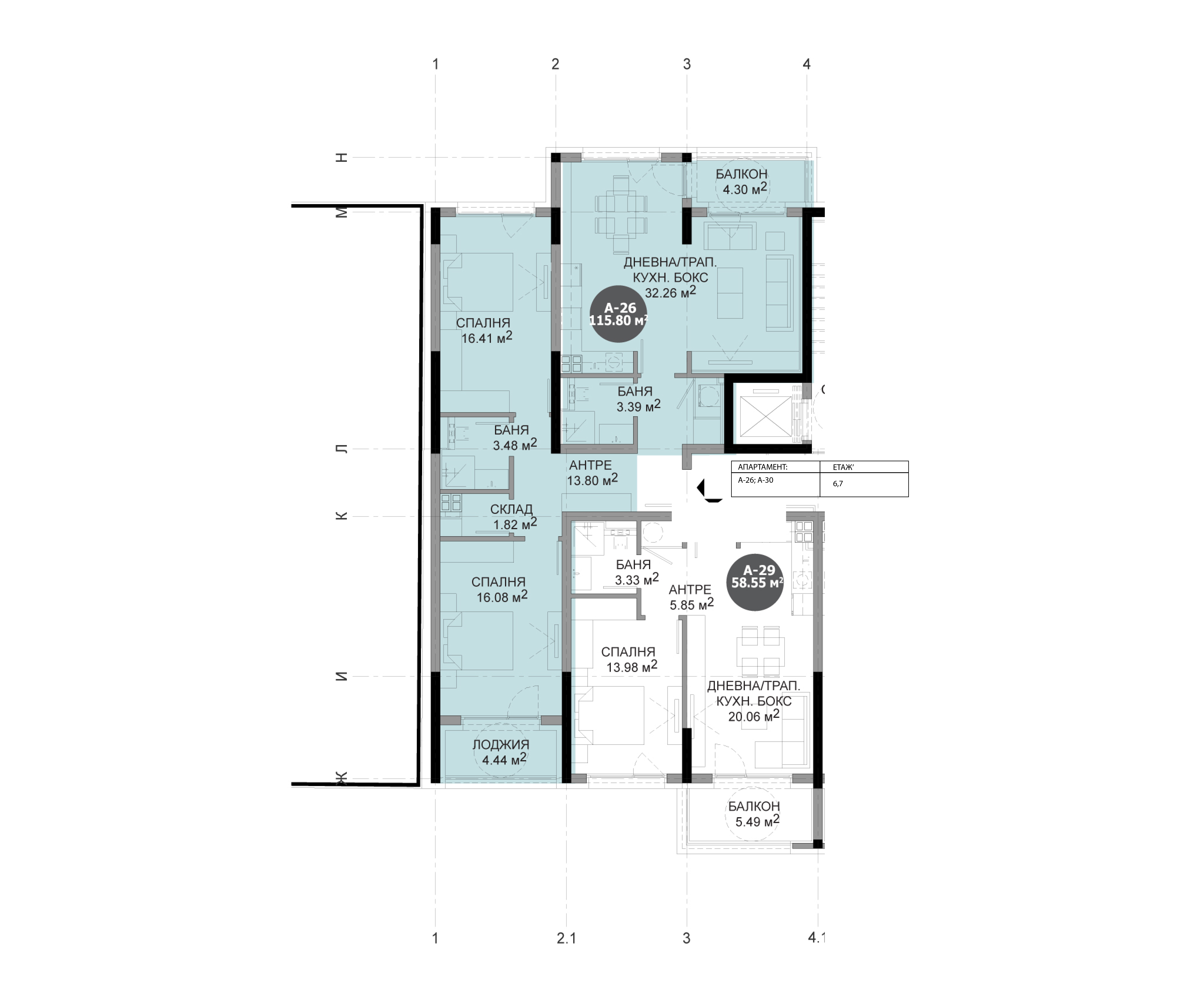 | Апартамент А26 | Етаж 7 | Тристаен | 115.80 | 136.07 | ЮЗ/СИ | Свободен |