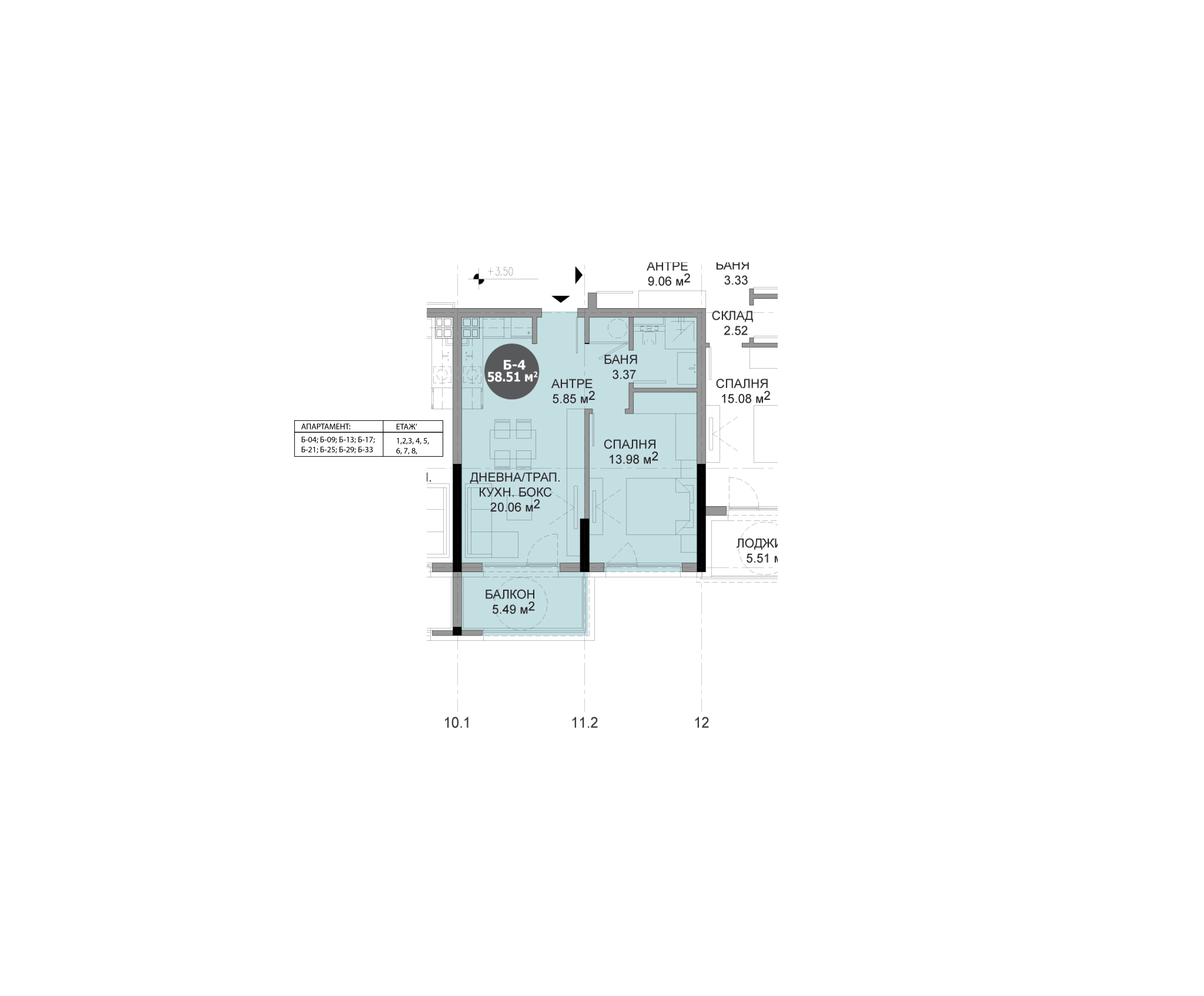 | Апартамент Б33 | Етаж 9 | Двустаен | 58.51 | 66.73 | ЮЗ | Свободен |