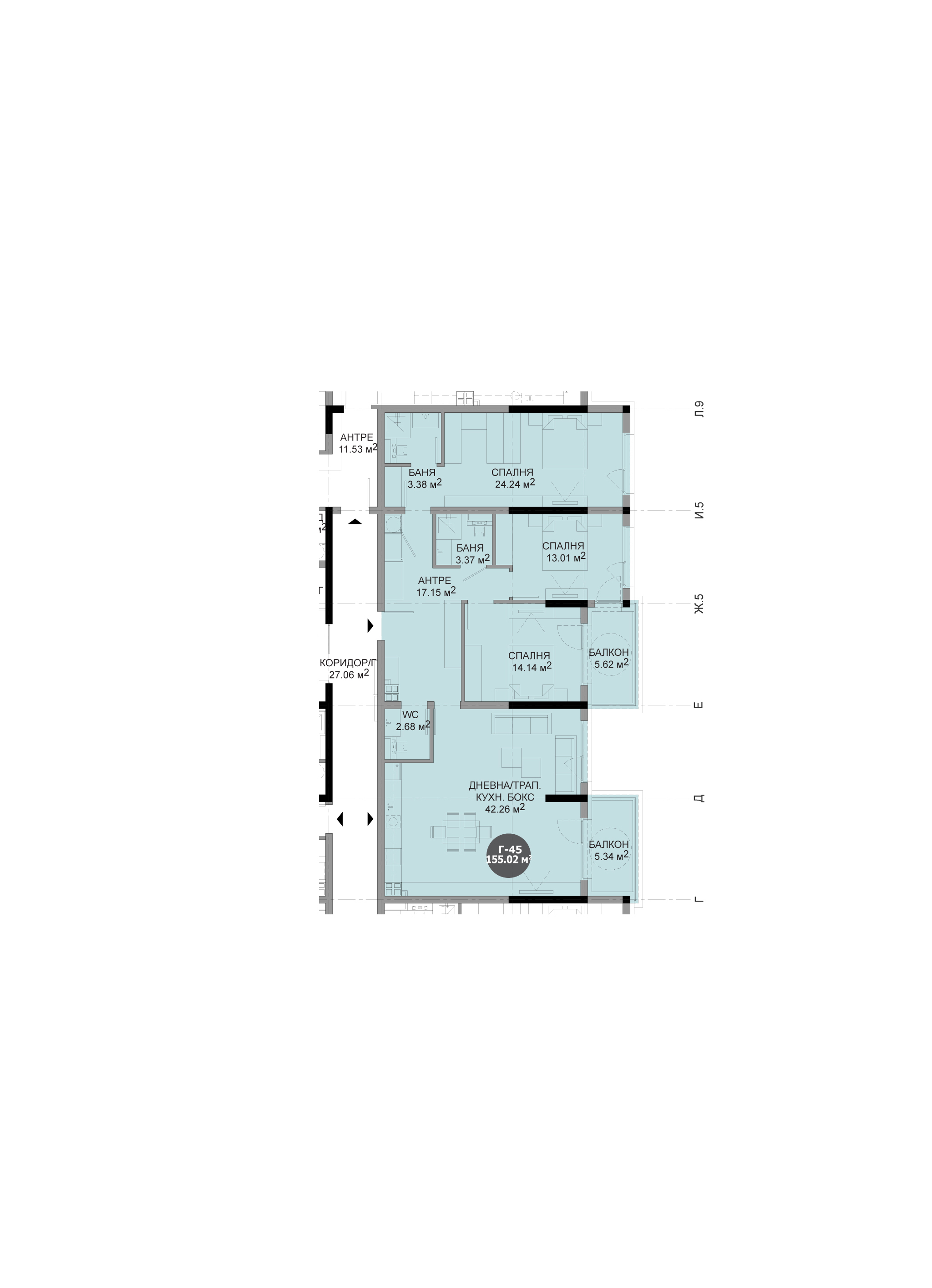 | Апартамент Г45 | Етаж 9 | Четиристаен | 155.02 | 176.55 | ЮЗ | Свободен |